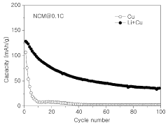 - Incorporation of a sacrificial cathode material like Li3N, Li2O, LiN3, Li5FeO4, LiO2, or Li2C2O4 in the positive electrode, which decomposes to provide additional Li during initial charging, and a lithium-free anode buffer layer using metals like Au, In, Ag, Bi, Si, Ab, Sn, Zn, Al, Mg, or alloys thereof, to compensate for Li loss.