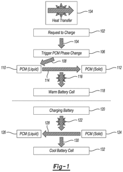 Technical Solution: BYD has developed an innovative Blade Battery technology that incorporates a novel thermal management system. This system utilizes a heat-conducting silicone material and a liquid cooling plate to efficiently dissipate heat[1]. The Blade Battery's unique structure allows for better heat distribution and improved thermal stability. BYD has also implemented a smart temperature control system that adjusts cooling based on real-time battery conditions, enhancing overall performance and safety[2]. Additionally, BYD has explored the use of phase change materials (PCMs) in their battery packs to absorb excess heat during high-load operations and release it during low-load periods, effectively regulating battery temperature[3].