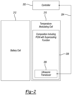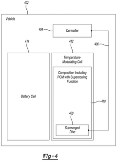 Phase change materials (PCMs) are incorporated into battery thermal management systems to enhance temperature regulation. These materials, used in conjunction with antifreeze solutions, can absorb excess heat during high-load conditions and release it during cooler periods, providing an additional layer of thermal stability for the battery pack.Expand Specific Solutions05 Eco-friendly and high-performance antifreeze formulations