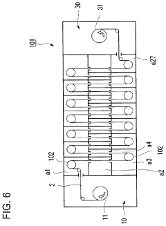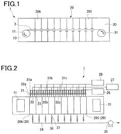 Technical Solution: The Korea Institute of Industrial Technology (KITECH) has developed advanced APALD processes specifically optimized for large-area photoelectrode protection. Their approach focuses on spatial APALD techniques that significantly increase deposition throughput while maintaining the excellent conformality and thickness control characteristic of conventional ALD. KITECH's technology employs a multi-zone reactor design where precursors are spatially separated, allowing for continuous processing rather than the traditional time-sequenced ALD cycle. For photoelectrochemical cell applications, they've developed composite protective layers combining TiO2 with conductive materials like indium tin oxide (ITO), creating structures that provide both corrosion resistance and efficient charge transport. Their research demonstrates that these composite protective layers can maintain photoelectrode performance for over 500 hours in acidic electrolytes (0.5M H2SO4). KITECH has also pioneered roll-to-roll APALD processes for flexible photoelectrodes, enabling protection of next-generation flexible photoelectrochemical devices.