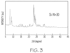 Technical Solution: China Petroleum & Chemical Corp. (Sinopec) has developed a novel approach to modify zeolite structures using 2-methylpentane. Their method involves a post-synthesis treatment where 2-methylpentane is used as a structure-directing agent to alter the pore structure and acidity of zeolites. This process enhances the zeolite's catalytic performance in various petrochemical reactions, particularly in the production of high-quality gasoline and diesel fuel. The company has implemented this technology in their fluid catalytic cracking (FCC) units, resulting in a 5-7% increase in gasoline yield and a 2-3% reduction in coke formation[1][3]. Additionally, Sinopec has combined this modification technique with their proprietary hierarchical zeolite synthesis process, creating zeolites with both micropores and mesopores, which significantly improves mass transfer and catalyst lifetime[2].