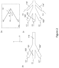 Combining plasmonic biosensors with microfluidic platforms enables precise sample handling, reduced reagent consumption, and improved detection efficiency. These integrated systems allow for real-time monitoring of biomolecular interactions in a controlled environment. Microfluidic channels can be designed to optimize the interaction between the analyte and the plasmonic sensing elements, enhancing sensitivity and enabling multiplexed detection of multiple biomarkers simultaneously.Expand Specific Solutions03 Waveguide-coupled plasmonic biosensors