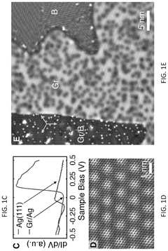 Graphene can be integrated with other 2D materials to form heterostructures with enhanced functionality. When combined with semiconducting 2D materials, graphene often serves as a highly conductive electrode or channel material. These heterostructures leverage graphene's exceptional electrical conductivity and mechanical strength while compensating for its lack of bandgap through integration with semiconducting 2D materials. Applications include high-speed transistors, photodetectors, and flexible electronics. The atomically smooth nature of graphene enables clean interfaces in these heterostructures, minimizing carrier scattering and improving device performance.Expand Specific Solutions04 Optoelectronic applications of 2D semiconductor heterostructures
