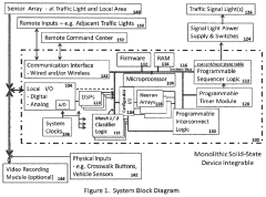 - Implementing a neural network-based traffic control system that uses real-time adaptive learning and high-density solid-state devices to recognize traffic patterns and make optimal decisions without external synchronization, reducing reliance on digital processors and minimizing installation and upgrade costs.
