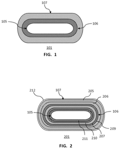 Various processing techniques and surface treatments can significantly enhance the performance of aramid and carbon fibers. Surface modifications such as plasma treatment, chemical functionalization, and sizing application improve fiber-matrix adhesion and interfacial properties. Advanced manufacturing methods including pultrusion, filament winding, and automated fiber placement optimize fiber orientation and distribution, resulting in composites with superior mechanical integrity and durability for high-performance applications.Expand Specific Solutions04 Hybrid and reinforcement applications