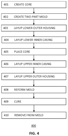Technical Solution: Toray has developed advanced carbon fiber composite technologies specifically designed for impact resistance applications. Their T1100G carbon fiber offers exceptional tensile strength (7.0 GPa) and modulus (324 GPa), making it ideal for applications requiring high impact resistance. For impact scenarios, Toray employs a multi-scale approach combining nano, micro, and macro structural engineering to optimize energy absorption. Their proprietary resin systems feature modified toughening agents that enhance interlaminar strength by up to 30% compared to standard systems. Toray's research has demonstrated that their carbon fiber composites can absorb 40-50% more energy during impact events than conventional materials, while maintaining structural integrity. They've also developed hybrid solutions incorporating both carbon and aramid fibers to leverage the complementary properties of both materials - carbon fiber's stiffness and aramid's superior impact resistance and damage tolerance.