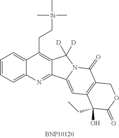- Development of deuterated analogs of (4S)-4-Ethyl-4-hydroxy-11-[2-(trimethylsilyl)ethyl]-1H-pyrano[3′,4′:6,7]indolizino[1,2-b]quinoline-3,14(4H,12H)-dione, such as BNP10120 and BNP10121, and their pharmaceutically acceptable salts and derivatives, which are synthesized to improve metabolic profiles and reduce toxicity.