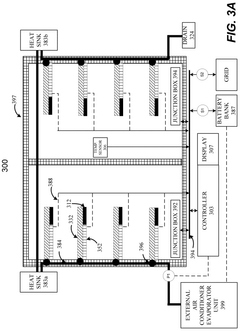 Strengths: Highly efficient integration with existing building systems allows for dual benefits of energy production and cooling. The technology requires minimal maintenance once installed and can operate autonomously with basic monitoring. Weaknesses: Performance is dependent on sunlight availability and may be less effective during cloudy periods or in heavily shaded urban environments. The initial manufacturing process for the specialized materials is energy-intensive.
