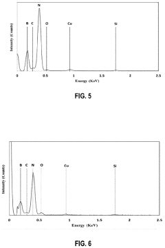 - 04 Use in mechanical reinforcement and barrier materialsBoron nitride nanosheets can significantly enhance the mechanical properties of composite materials due to their high strength and stiffness. When incorporated into polymers or other matrices, they can improve tensile strength, modulus, and wear resistance. Additionally, their layered structure makes them effective barrier materials for gases and liquids, useful in packaging, coatings, and membrane applications.Expand Specific Solutions