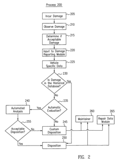 - A damage assessment system comprising a damage reporting module, an automated analysis module, and a repair data module that allows for user input, automated data object creation, and analysis using finite element analysis to determine corrective actions, reducing the need for manual communication and improving data retention and analysis efficiency.