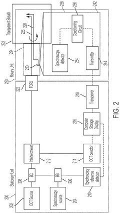 - The system employs direct detection of electromagnetic radiation within the rotary unit before the FORJ, converting the signal to other forms of energy, such as electrical, and transmitting it wirelessly or through electrical rotary junctions, allowing for high-fidelity multimodal characterization by separating modalities prior to fiber-optic junctions, thereby reducing system complexity and increasing signal-to-noise ratio.