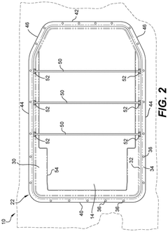 Technical Solution: Ford has developed a multi-functional structural battery system that integrates directly with the vehicle's Body-in-White. Their approach utilizes a "cell-to-chassis" design philosophy where specially engineered battery cells are incorporated as load-bearing elements within the vehicle structure. Ford's system employs a novel battery cell housing design that distributes mechanical loads while providing thermal management and electrical isolation. The cells are arranged in a honeycomb-like structure that maximizes energy density while contributing to the vehicle's structural rigidity. Ford has developed proprietary joining methods that allow the battery structure to be securely integrated with the vehicle's steel or aluminum body components, creating a unified structure that enhances crash performance. This integration approach has been implemented in their electric vehicle platforms, where the battery pack forms part of the vehicle's floor structure, contributing significantly to torsional stiffness while eliminating the need for separate protective structures around the battery.