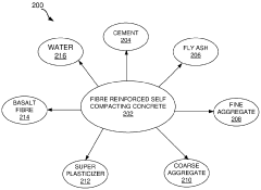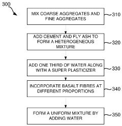 - Mix design optimization for enhanced fiber-concrete bonding: Optimizing concrete mix design can significantly improve the bonding between basalt fibers and the concrete matrix. Factors such as water-cement ratio, aggregate size distribution, and supplementary cementitious materials play crucial roles in enhancing the interface properties. The addition of nano-materials, polymers, or special admixtures can further improve the microstructure of the interface transition zone. These optimizations lead to increased pullout resistance, better slip control, and improved overall mechanical performance of basalt fiber reinforced concrete.