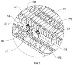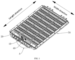 The arrangement and interconnection of individual battery cells within a pack significantly impact overall performance, safety, and efficiency. Various configurations include series, parallel, or series-parallel arrangements to achieve desired voltage and capacity specifications. Advanced interconnection methods utilize bus bars, flexible circuits, or direct bonding techniques to minimize resistance, improve current distribution, and enhance thermal management while ensuring reliable electrical connections between cells.Expand Specific Solutions05 Safety Features and Failure Mitigation