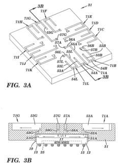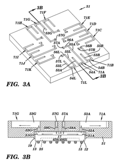 Technical Solution: Samsung SDI has developed an advanced semiconductor-based battery thermal management system (BTMS) that integrates silicon carbide (SiC) and gallium nitride (GaN) power semiconductors into their battery modules. Their solution employs a multi-layered approach where semiconductor materials are strategically placed between battery cells to facilitate efficient heat dissipation. The system utilizes phase-change materials (PCMs) combined with semiconductor thermal interface materials that optimize thermal conductivity while maintaining electrical isolation. Samsung's BTMS incorporates intelligent thermal sensors embedded within semiconductor substrates that provide real-time temperature monitoring across the battery pack, enabling dynamic thermal management. Their system adjusts cooling intensity based on operational conditions, battery state of charge, and ambient temperature, significantly improving energy efficiency and battery longevity.