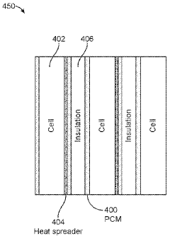 Technical Solution: Samsung SDI has developed a multi-layered thermal management system for high-capacity lithium-ion cells that combines active cooling with innovative materials to prevent thermal runaway propagation. Their approach includes a novel separator technology with ceramic coating that maintains structural integrity at high temperatures, preventing internal short circuits. The company has implemented early detection systems using real-time impedance monitoring to identify potential thermal events before they escalate. Samsung's solution also incorporates flame-retardant additives in the electrolyte composition that activate at elevated temperatures to suppress combustion reactions. Additionally, they've engineered cell-to-cell isolation barriers within battery modules that can contain thermal events to a single cell, preventing cascading failures across the entire battery pack.