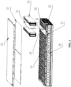 Technical Solution: BYD has developed the Blade Battery technology that fundamentally addresses thermal runaway concerns in telecommunication systems. This lithium iron phosphate (LFP) battery utilizes a unique cell-to-pack design where long, thin cells ("blades") are arranged in parallel and inserted directly into the battery pack. This architecture significantly improves heat dissipation by increasing surface area and reducing thermal pathways between cells. For telecommunication applications, BYD has enhanced this technology with a specialized cooling system that maintains optimal operating temperatures even under high-load conditions. Their solution includes a multi-level safety monitoring system with redundant temperature sensors and an intelligent Battery Management System (BMS) that can isolate individual blade cells if abnormal conditions are detected. The system also features flame-retardant materials between cells and an emergency ventilation system that activates automatically to release pressure and heat if thermal events occur. BYD's approach emphasizes inherent safety through chemistry choice (LFP is inherently more thermally stable than other lithium-ion chemistries) combined with structural innovations that physically prevent thermal propagation.
