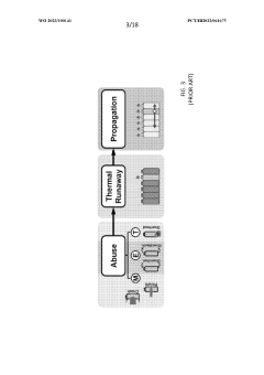- Thermal runaway propagation prevention: Preventing the propagation of thermal runaway from one cell to neighboring cells is essential for battery safety. This is achieved through thermal barriers, insulating materials, and strategic cell arrangement within battery packs. Fire-resistant materials, heat-absorbing structures, and compartmentalization techniques are implemented to contain thermal events and prevent system-wide failures, particularly important in large battery installations for electric vehicles and energy storage systems.