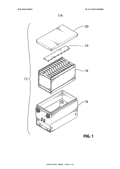Technical Solution: Tesla has pioneered a multi-faceted approach to battery thermal runaway prevention and containment for extreme environments. Their solution integrates: 1) A patented intumescent material system that expands when exposed to heat, creating physical barriers between cells; 2) A sophisticated serpentine cooling system using a proprietary coolant formula that maintains optimal operating temperatures between -40°C and 60°C; 3) Advanced cell-level fusing that electrically isolates compromised cells within milliseconds; 4) Dedicated venting channels that direct thermal events away from critical components and passenger compartments; and 5) A predictive thermal management algorithm that continuously monitors individual cell impedance and temperature patterns to identify potential failure points before thermal runaway occurs. Tesla's system has been extensively tested in extreme conditions including desert heat (55°C+), arctic cold (-40°C), and high-altitude operations, demonstrating the ability to prevent propagation of thermal events across the battery pack.