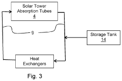 Heat transfer fluid (HTF) limitations represent another critical challenge. Conventional molten salts used as HTFs typically solidify at temperatures around 220-290°C, necessitating energy-intensive freeze protection systems. These systems consume substantial parasitic power, reducing the net energy output of solar tower facilities. Additionally, current HTFs have temperature ceilings that restrict maximum operating temperatures, limiting overall system efficiency and power generation capacity.
