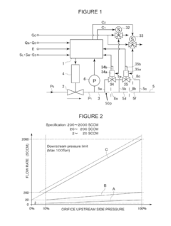 - A flow rate range variable type control apparatus that switches fluid passages and detection levels for small and large flow quantities, using multiple orifices in parallel with switching valves to maintain high accuracy across a wide range, and incorporates thermal type mass flow rate control for enhanced flexibility and accuracy.