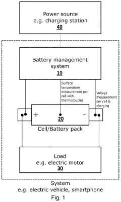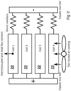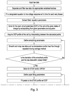 Technical Solution: LG Energy Solution has developed advanced electrochemical cell potential monitoring systems specifically for wearable technology applications. Their proprietary BMS (Battery Management System) incorporates real-time electrochemical impedance spectroscopy to benchmark cell potential across various operating conditions. The technology utilizes micro-reference electrodes integrated into flexible battery substrates that enable continuous monitoring without compromising form factor. Their solution includes temperature-compensated algorithms that adjust benchmarking parameters based on skin temperature and environmental conditions, crucial for wearable applications. LG has implemented machine learning models that predict electrochemical performance degradation over time, allowing for preventative maintenance notifications to users. Their system achieves power densities of >400 Wh/L while maintaining accurate potential measurements within ±5mV across operating temperatures from 0-45°C.
