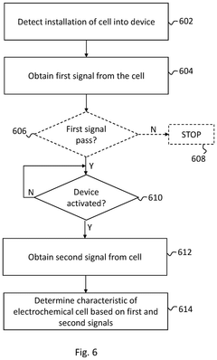 Technical Solution: Verily Life Sciences has developed a sophisticated electrochemical cell potential benchmarking platform specifically designed for medical-grade wearable technology. Their system incorporates biocompatible reference electrodes with proprietary surface treatments that minimize drift when in contact with biological fluids. Verily's approach utilizes differential measurement techniques that compare working electrode potentials against multiple reference points, enabling compensation for variations in skin impedance and environmental factors. Their benchmarking methodology includes continuous impedance spectroscopy that characterizes cell behavior across frequency ranges relevant to physiological monitoring (0.1Hz-10kHz). The platform features adaptive sampling rates that increase measurement frequency during periods of rapid potential change while conserving power during stable operation. Verily has implemented machine learning algorithms that correlate electrochemical signatures with specific usage patterns and physiological states, enabling personalized battery management strategies. Their clinical studies have demonstrated measurement stability over 14+ days of continuous wear with less than 3% drift in reference potentials.