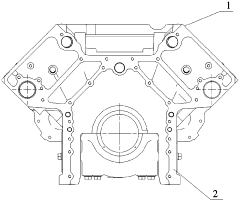 - A V-shaped 12-cylinder cylinder block is designed, including two rows of left and right cylinders, multiple V-shaped reinforcing plates and two crankcase ventilation channels. U-shaped reinforcing ribs are set at the bottom, and an oil and gas separation structure is added inside the cylinder block. Reasonable parameter design improves the strength and stiffness of the cylinder block.