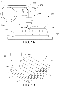 Material properties significantly impact the achievable geometric precision and surface quality in both Binder Jetting and FDM processes. In FDM, filament properties such as viscosity, thermal expansion, and shrinkage affect dimensional accuracy and surface finish. Binder Jetting's powder characteristics including particle size distribution, flowability, and packing density influence resolution and surface roughness. Composite materials and specialized formulations have been developed to enhance geometric capabilities while maintaining structural integrity. Material selection must be optimized based on the specific geometric requirements and intended application of the printed parts.Expand Specific Solutions04 Process parameters optimization for improved geometric accuracy