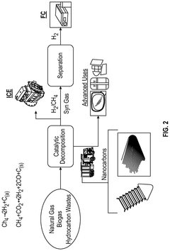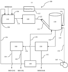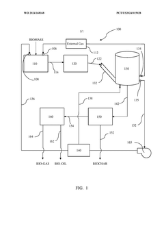 Technical Solution: Accelergy Corporation has developed an advanced catalytic biochar activation technology that significantly enhances the kinetics of the activation process. Their approach utilizes proprietary metal-organic catalyst formulations that reduce activation energy requirements while promoting uniform pore development. The process employs a fluidized bed reactor system with precise temperature zoning (350-850°C) that allows for controlled exposure of biochar to activation agents. Accelergy's technology incorporates real-time monitoring of activation progress through electrical conductivity measurements of the biochar, enabling dynamic adjustment of process parameters. Their system features a patented gas recirculation mechanism that optimizes the concentration of activation agents (CO2, steam, or chemical activators) throughout the process, ensuring uniform activation across the biochar particles. The company has implemented a sophisticated process control system that utilizes predictive modeling to anticipate reaction kinetics based on feedstock characteristics, allowing for automated adjustment of residence time, temperature profiles, and activating agent concentrations to achieve targeted biochar properties.