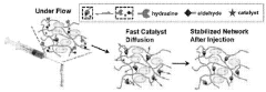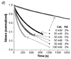 - A biocompatible organic catalyst is used to modulate the dynamic properties of hyaluronic acid-based hydrogels through dynamic covalent hydrazone crosslinking, accelerating crosslink exchange during injection and slowing it down post-injection to achieve both high injectability and stability.