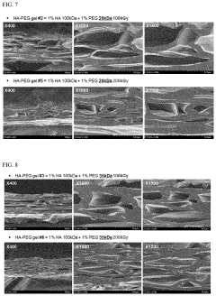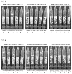 Synthetic polymer-based injectable hydrogels, including polyethylene glycol (PEG), poly(lactic-co-glycolic acid) (PLGA), and polyvinyl alcohol (PVA) derivatives, can be engineered with specific biocompatible properties. These materials offer tunable mechanical strength, degradation rates, and functional groups that can be modified to improve cell adhesion and reduce foreign body responses. Their synthetic nature allows for consistent production and customization for specific biomedical applications.Expand Specific Solutions03 Composite hydrogels for improved biocompatibility
