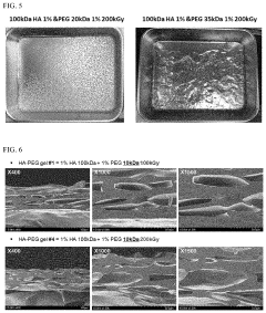 Technical Solution: Johnson & Johnson Vision Care has developed advanced biocompatible hydrogel technologies for ophthalmic applications, particularly for contact lenses and injectable ocular treatments. Their ACUVUE® OASYS with Transitions™ utilizes a proprietary senofilcon A hydrogel material that incorporates photochromic molecules. For injectable applications, they've developed crosslinked hyaluronic acid-based hydrogels with enhanced viscoelastic properties for intraocular procedures. The company implements comprehensive biocompatibility testing protocols that exceed ISO 10993 requirements, including specialized ocular biocompatibility assessments such as corneal epithelial barrier function tests and tear film interaction studies. Their hydrogel formulations undergo rigorous evaluation for protein adsorption, inflammatory response, and long-term tissue compatibility. J&J has established proprietary manufacturing processes that ensure consistent hydrogel properties with minimal batch-to-batch variation, critical for meeting stringent medical device regulations.