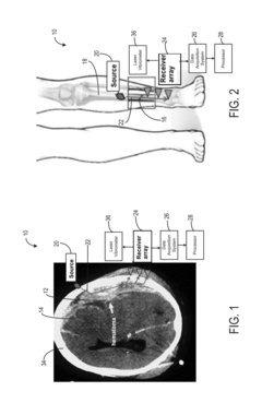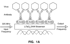 Technical Solution: Hitachi has pioneered the development of surface acoustic wave (SAW) biosensors that utilize transverse waves for medical diagnostics. Their technology employs interdigital transducers (IDTs) on piezoelectric substrates to generate and detect SAWs, allowing for label-free and real-time detection of biomolecules[2]. Hitachi's biosensors incorporate nanomaterials such as graphene to enhance sensitivity and expand the range of detectable analytes[4]. The company has also developed multi-channel SAW devices for simultaneous detection of multiple biomarkers, improving diagnostic efficiency in clinical settings[6].