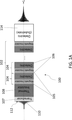 - The development of acoustically mediated pulsed radiation sources based on superlattices with alternating magnetic insulator and dielectric layers, where acoustic pulses excite in-phase standing spin waves to generate electromagnetic radiation, enhancing output power across a wide frequency range including mmW frequencies.