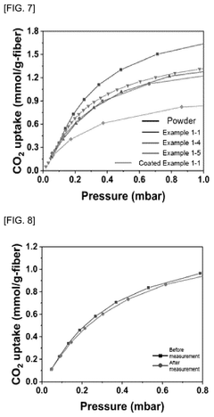 Strengths: Exceptional stability in humid conditions; low regeneration energy requirements; modular design allowing scalable implementation in existing facilities. Weaknesses: Higher initial material costs compared to conventional sorbents; requires specialized training for operation and maintenance; performance degradation after approximately 500 regeneration cycles necessitating periodic sorbent replacement.