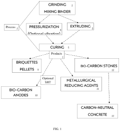 - A bio-carbon material comprising charcoal and a phenolic resin binder, with the binder comprising at least 50% phenolic resin, is developed, which can be compressed to achieve high strength and used in various forms such as briquettes, anodes, or concrete aggregates, reducing the need for fossil fuels and sequestering carbon.