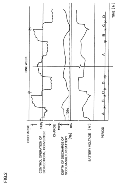- A method involving sequential stopping and restarting of sodium-sulfur batteries based on predetermined priority order when charge or discharge power reaches a certain threshold, ensuring accurate battery depth management and preventing current dead zones.