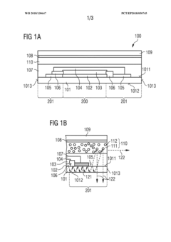 Optimization of SALD processes for high-speed deposition while maintaining film quality for encapsulation applications. This includes innovations in precursor chemistry, gas flow dynamics, and temperature control to achieve faster deposition rates without compromising the barrier properties of the encapsulation layers. Advanced process control strategies are implemented to ensure uniformity and reproducibility across large substrate areas.Expand Specific Solutions05 Flexible and transparent encapsulation for next-generation devices