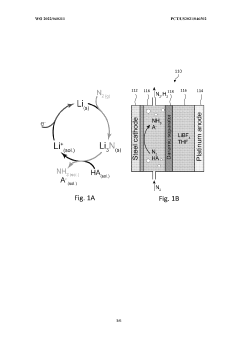 - Electrolyte optimization for enhanced Faradaic efficiency: The composition and properties of the electrolyte significantly impact the Faradaic efficiency of nitrogen reduction reactions. Factors such as pH, ionic strength, and the presence of specific ions can influence the reaction pathway and selectivity. Optimized electrolytes can suppress competing reactions, particularly hydrogen evolution, thereby increasing the Faradaic efficiency toward ammonia production. Various electrolyte systems, including aqueous, non-aqueous, and ionic liquids, have been investigated to create favorable conditions for nitrogen reduction while minimizing unwanted side reactions.