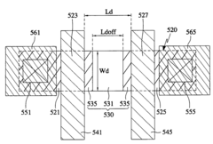 - The implementation of transistors with varying resistance values, including multiple gates and offset regions with different doping concentrations or shapes, to control the current flowing through organic electroluminescent devices, thereby regulating the luminance and extending the device's life cycle.