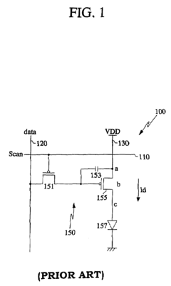 Technical Solution: Everdisplay has developed a flexible AMOLED solution utilizing LTPS (Low-Temperature Poly-Silicon) backplane technology, which provides high electron mobility and uniform performance across large display areas[1]. They have implemented a proprietary compensation algorithm to address non-uniformity issues in OLED aging, crucial for maintaining image quality in large flexible screens[2]. Everdisplay's approach includes a novel flexible substrate material that offers improved dimensional stability during the manufacturing process, enhancing yield rates for large-scale production[3]. To improve touch functionality, Everdisplay has developed an in-cell touch solution specifically designed for flexible displays, reducing overall thickness and enhancing sensitivity[4]. Additionally, they employ a hybrid encapsulation technology that combines inorganic and organic layers to provide superior moisture barrier properties while maintaining flexibility in large screens[5].