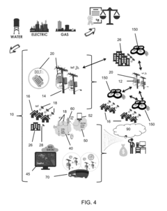 - Integration of unmanned aerial vehicles (UAVs) with transformer monitoring devices that incorporate transceivers, transmitters, and antennas to form a wireless mesh network, enabling data collection and transmission using 802.11s standards, with self-healing capabilities and security protocols for secure communication across utility IDs.