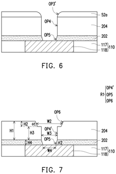- The implementation of a specific two-step etching process to form a phase change layer with a reduced critical dimension in PCM cells, enhancing self-heating efficiency and reducing reset current, while preventing voids and ensuring uniform layer deposition.