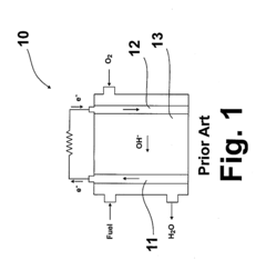 Water management represents another complex technical barrier. Unlike proton exchange membranes, AAEMs require precise water balance to maintain hydroxide conductivity while preventing excessive swelling or flooding of electrodes. The water generated at the anode (rather than cathode) creates unique mass transport challenges that conventional fuel cell designs struggle to address effectively.