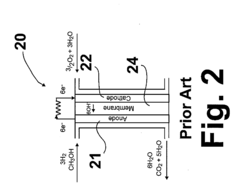 Innovative electrode designs can incorporate self-purging mechanisms that actively remove carbonates formed during operation. These designs include specific catalyst layer structures, flow field patterns, and operational protocols that periodically flush the system to remove accumulated carbonates, thereby maintaining performance even under continuous CO2 exposure conditions.Expand Specific Solutions04 CO2-tolerant catalysts and catalyst supports