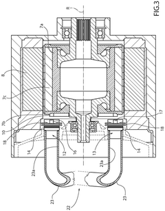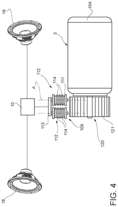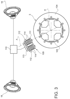 Technical Solution: Bosch has developed advanced noise reduction techniques for electric vehicle powertrains, focusing on minimizing coil whine. Their approach includes innovative winding designs and advanced insulation materials to reduce electromagnetic noise. They have implemented active noise control systems that use counter-phase sound waves to cancel out coil whine[1]. Additionally, Bosch has developed specialized software algorithms that optimize the switching frequency of power electronics to minimize audible noise[3]. Their solutions also incorporate mechanical damping and isolation techniques to prevent the transmission of vibrations caused by coil whine to the vehicle body[5].