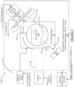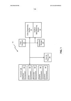 Effective color control in volumetric additive manufacturing requires sophisticated calibration and standardization methods. These approaches involve creating reference color samples under controlled conditions and developing mathematical models that map between digital color specifications and physical outputs. The systems account for material-specific properties, environmental factors, and equipment variations that can affect color reproduction. Regular calibration procedures ensure that the manufacturing system consistently produces the intended colors across different production runs.Expand Specific Solutions05 Post-processing techniques for color enhancement