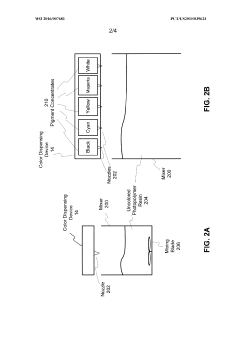 Cross-linking chemistry improvements have led to more robust color fixation within polymer matrices. Advanced cross-linking agents now enable stronger bonds between colorants and base materials, preventing color migration and leaching that previously plagued volumetric color printing. These chemical innovations ensure that colors remain fixed in their intended positions throughout the complex volumetric printing process, even when multiple colors are introduced simultaneously.