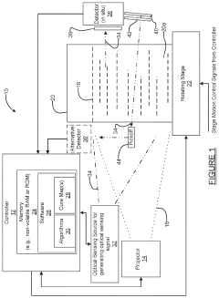 Technical Solution: Lawrence Livermore National Laboratory has developed an advanced volumetric additive manufacturing color control system utilizing their proprietary Computed Axial Lithography (CAL) technology. Their approach revolves around projecting computed tomographic patterns of light into photosensitive resins containing multiple photoinitiators with different spectral sensitivities. By precisely controlling the wavelength, intensity, and spatial distribution of light patterns from multiple angles, they can selectively cure specific regions with predetermined color properties throughout the entire volume simultaneously. The system incorporates sophisticated algorithms that calculate optimal light dose distributions to achieve desired color gradients and transitions within complex 3D geometries. LLNL's technology includes a multi-wavelength optical system with specialized light sources and filters to achieve precise spectral control. Their research has demonstrated the ability to create intricate colored objects with embedded functional features in a fraction of the time required by traditional layer-by-layer approaches. The system also features in-situ monitoring capabilities that analyze light transmission patterns to verify proper color formation during the printing process.